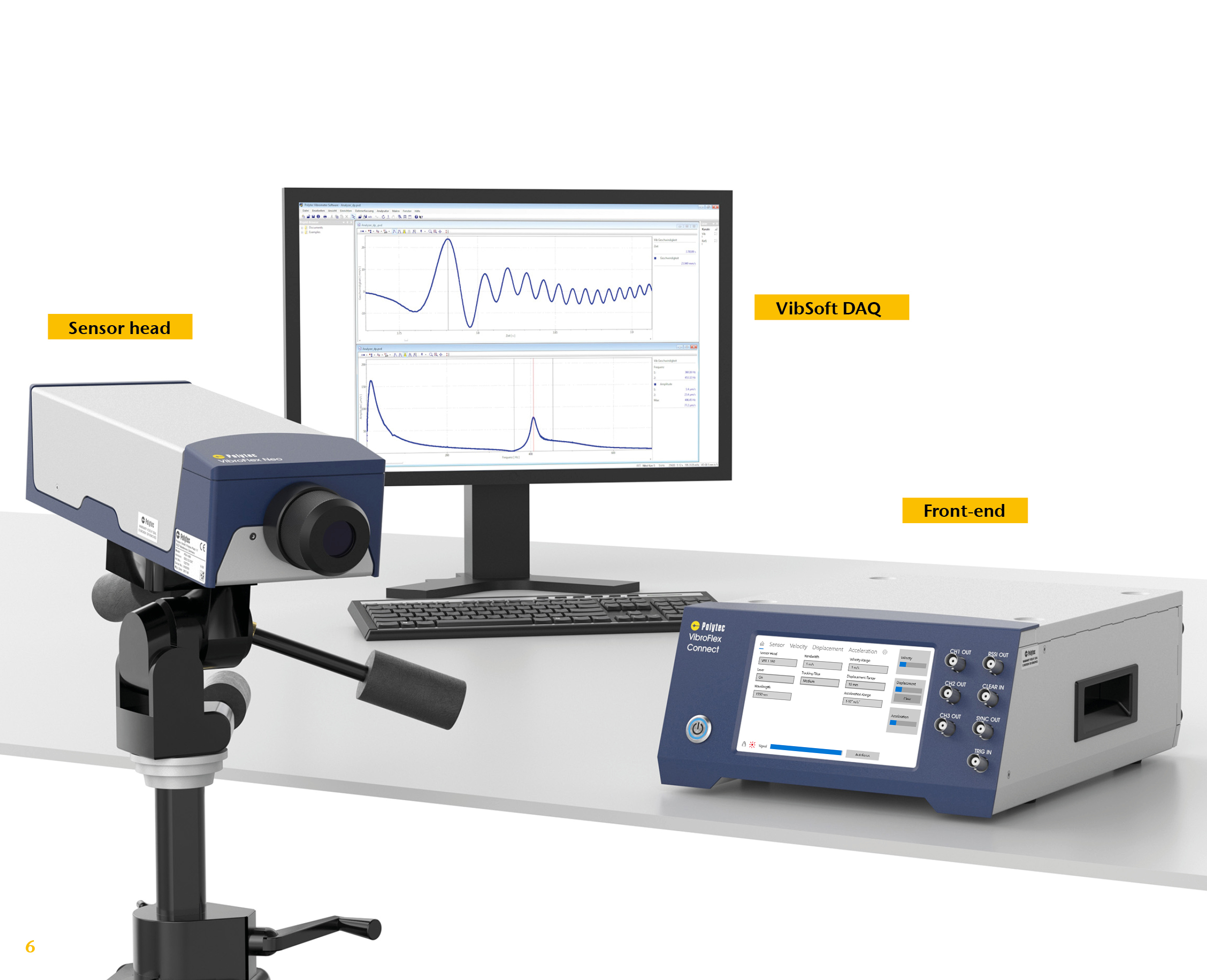 Choose between three versions VibSoft-VL, VibSoft-20 and VibSoft-PRO: Whether your testing applications require analog or fully digital data acquisition up to 25 MHz or multi-channel DAQ that allows connecting additional inputs like complementary sensor signals. When mobility is key, benefit from a lean, portable and WLAN connected laptop solution.