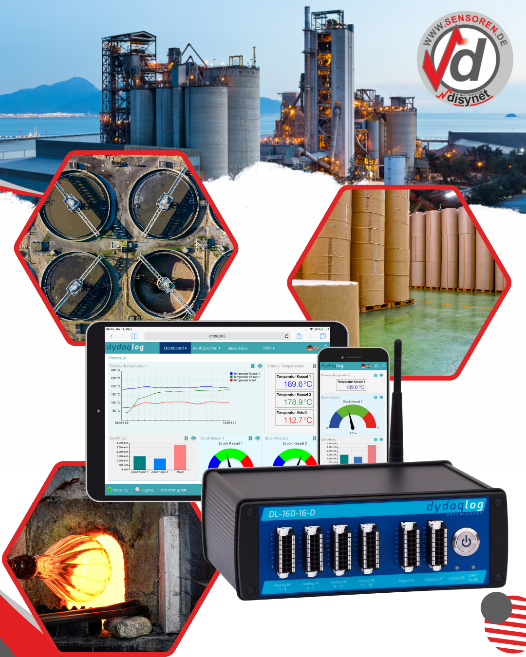 Ob Maschinen- und Anlagenbau, Ackerbau und Viehzucht, Temperaturmessung an Öfen, Klimaüberwachung in Gewächshäusern, Bauwirtschaft, Straßenbau, Pumpen- und Kühlhausüberwachung, Lagerhaltung, Museen, Lieferkettenüberwachung oder Industrie, wo oft die Daten dezentral erfasst werden müssen – der dydaqlog ist überall zuhause. Seine Fähigkeit, verschiedene Prozessdaten zu erfassen, zu verarbeiten und zu visualisieren, macht ihn zu einer zuverlässigen Lösung für unterschiedlichste Anwendungen.