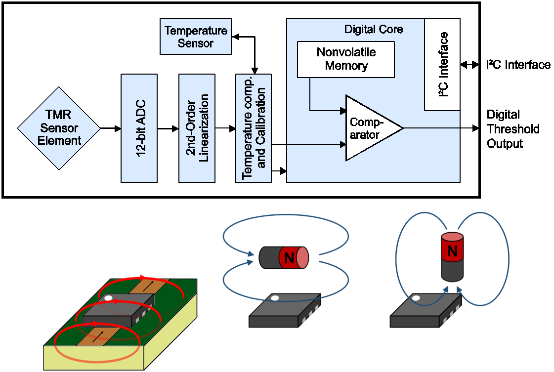 SM-Series Smart Sensors combine a GMR or TMR sensor element with digital signal processing to provide precise magnetic field measurements with high accuracy over the full -40 to +125C temperature range.