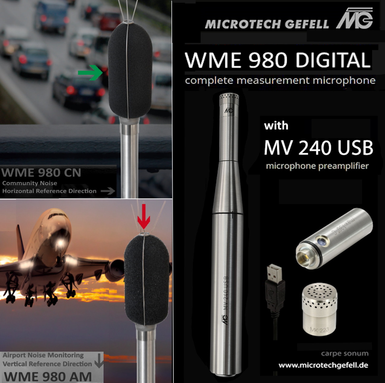 The combination of the weatherproof microphones of the WME 980 series with the new MV 240 USB allows for individual expansion of functionality and range of applications, especially when measuring community, traffic, or aircraft noise.