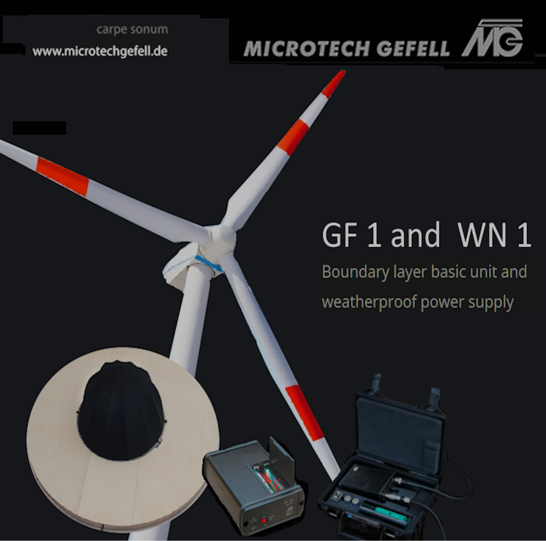 The boundary layer and the weatherproof power supply unit are specifically developed extensions in order to record the sound emission of wind power stations with measuring microphones pursuant to DIN EN 61400-11.